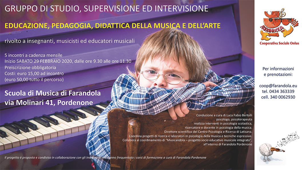 Sabato 29 febbraio 2020 alle 9.30, presso la Scuola di Musica di Farandola - Via Molinari, 41 - a Pordenone, prenderà il via un corso rivolto a insegnanti, musicisti ed educatori musicali dal titolo