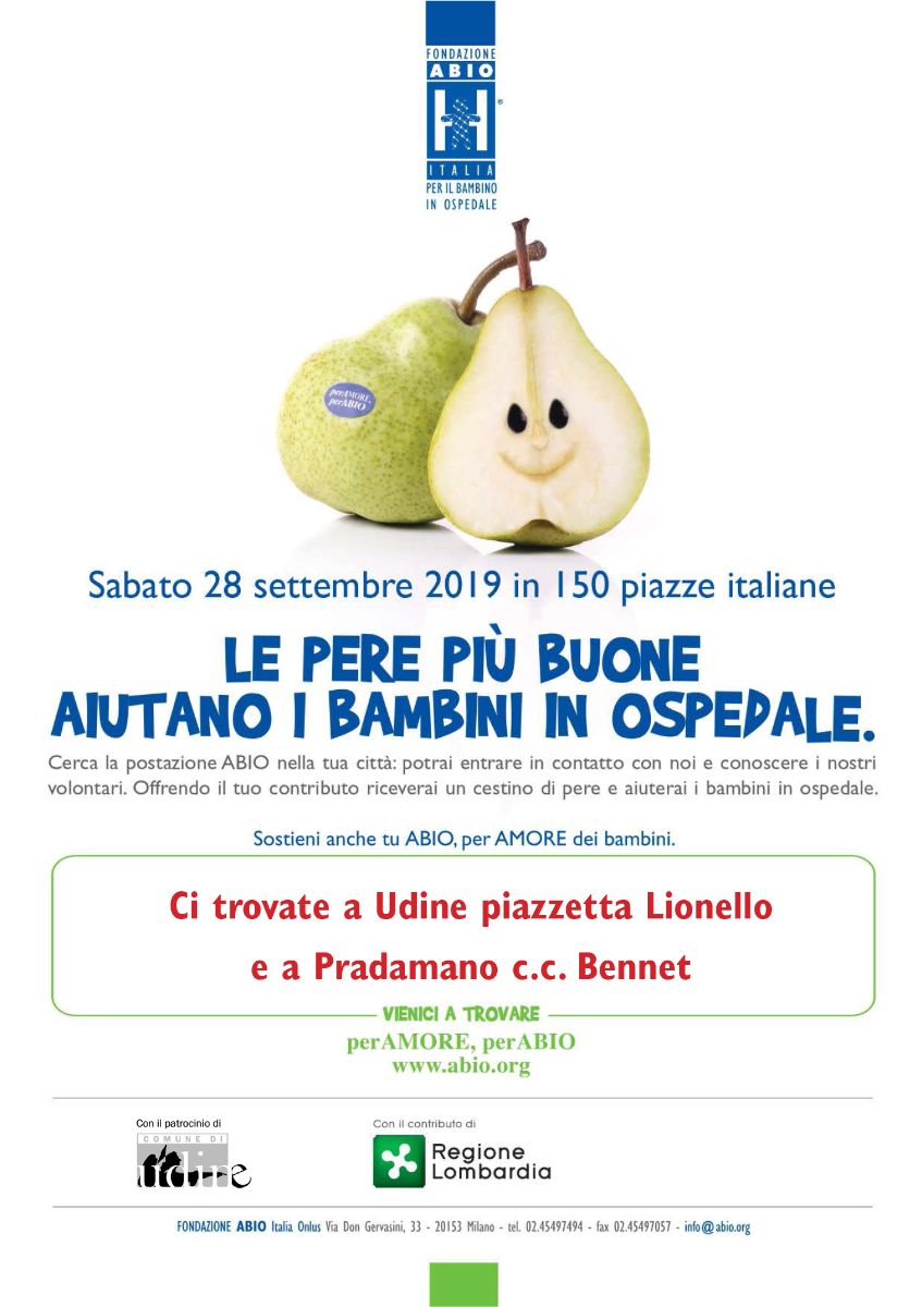 Sabato 28 settembre 2019, in 150 Piazze in tutt'Italia, Giornata Nazionale "perAmore, perABIO - Le pere più buone aiutano i bambini in ospedale"